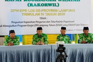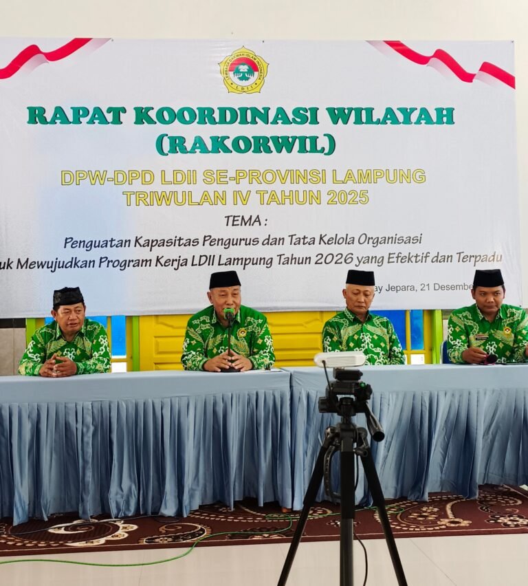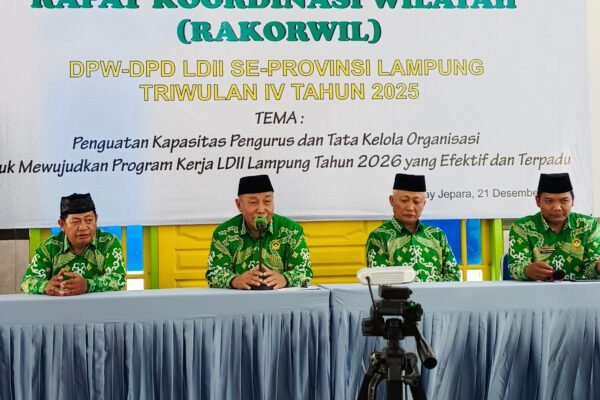 Way Jepara 21/12/2025 Lines. Kegiatan Rakorwil DPW-DPD LDII Se Provinsi Lampung Triwulan 4 Tahun 2025 di gelar di Ponpes Al Mannar Khamilal Quran Way Jepara Kabupaten Lampung Timur.Acara Rakorwil kali ini dihadiri oleh Jajaran Wanhatda, pengurus DPW, DPD LDII Se-Provinsi Lampung Tertib acara yang mulai dari pembukaan yang diawali dengan pembacaan Kalam Illahi, sambutan –…